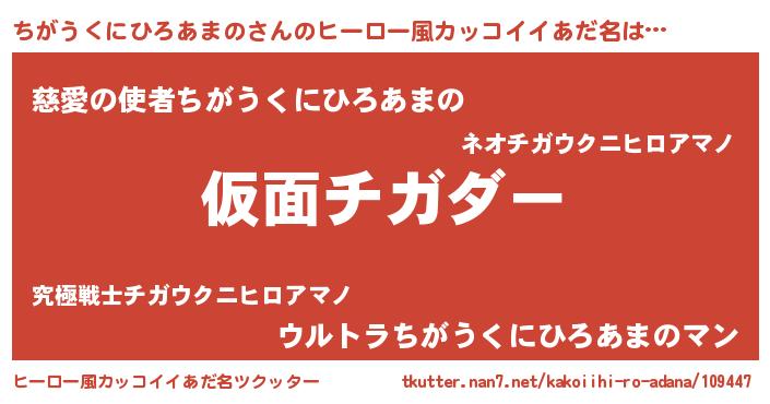 | 男性向けラノベタイトル風あだ名 | 『魔弾の王とちがうくにひろあまの』 |