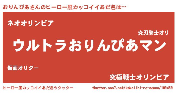 | 男性向けラノベタイトル風あだ名 | 『うちのおりんぴあが世界を掌握している!』 |