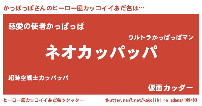 | 男性向けラノベタイトル風あだ名 | 『かっぱっぱという概念が存在しない退屈な世界 』 |