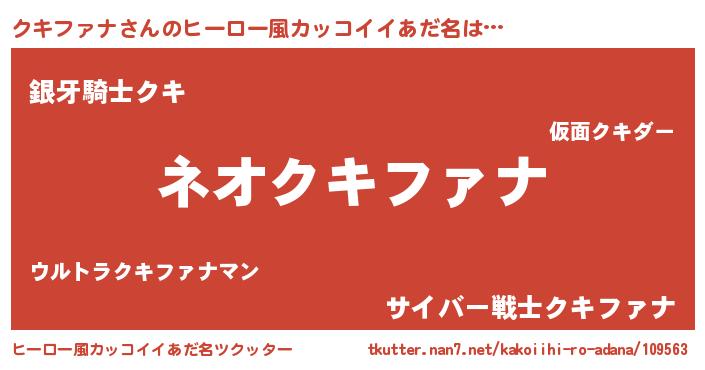 | 男性向けラノベタイトル風あだ名 | 『クキファナという概念が存在しない退屈な世界 』 |