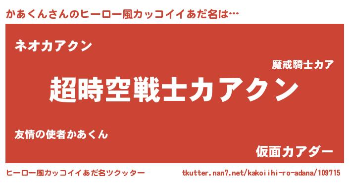 | 女子向けラノベタイトル風あだ名 | 『かあくんなんてお断りですっ。』 |