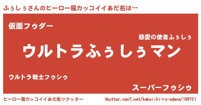 ふぅしぅさんのヒーロー風カッコイイあだ名をツクッター!