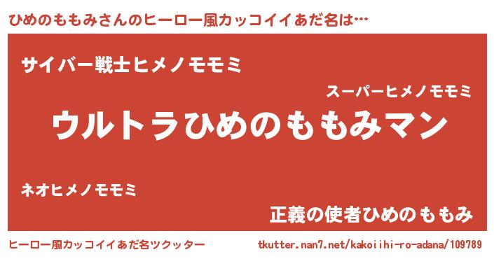 | 男性向けラノベタイトル風あだ名 | 『ヒメノモモミスレイヤー』 |