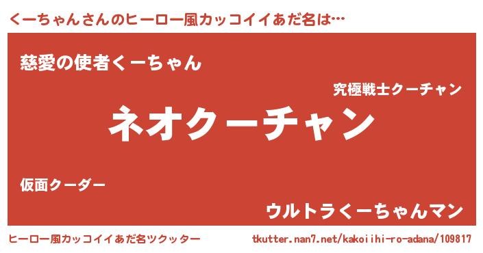 | 男性向けラノベタイトル風あだ名 | 『くーちゃんという概念が存在しない退屈な世界 』 |