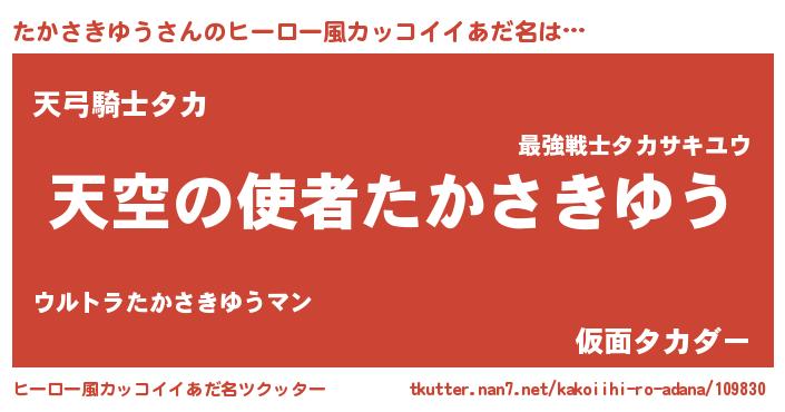 | 男性向けラノベタイトル風あだ名 | 『たかさきゆう~年齢イコール彼女いない歴の魔法使い~』 |