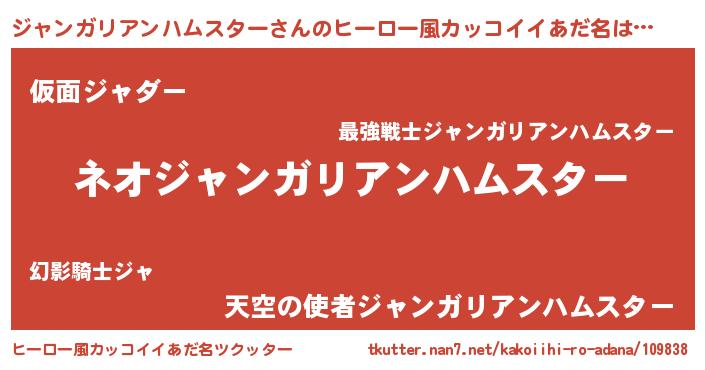| 女子向けラノベタイトル風あだ名 | 『異世界で失敗しない100のジャンガリアンハムスター』 |