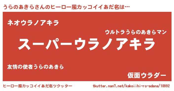 | 胡散臭い通販商品みたいなあだ名 | 『億万長者になれるブレスレット…その名も「うらのあきら」』 |