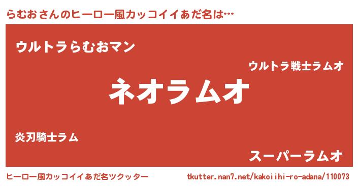 | 男性向けラノベタイトル風あだ名 | 『らむおという概念が存在しない退屈な世界 』 |