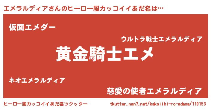 | ポケモン風あだ名 | 『ヒエメラルディア』『エーメイ』 |