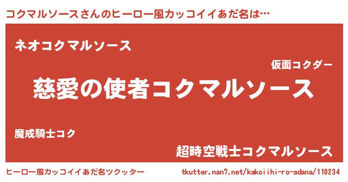 | 男性向けラノベタイトル風あだ名 | 『冴えないコクマルソースの育てかた』 |