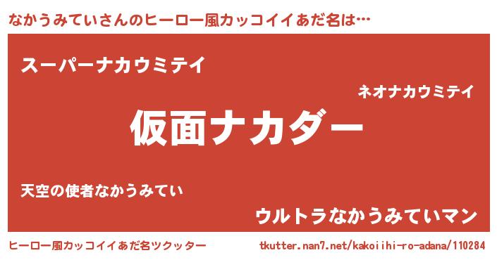 | 意味不明あだ名 | 『住所不定無職なかうみてい(5歳)』 |