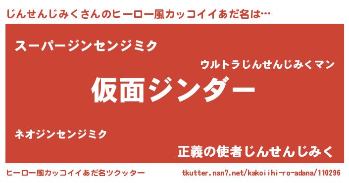 | 胡散臭い通販商品みたいなあだ名 | 『あなたにだけ特別に提供する限定10本のレアな日本酒…その名も「じんせんじみく」』 |