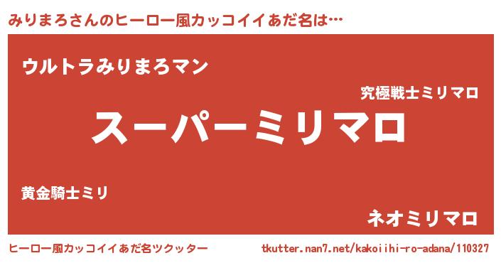 | 胡散臭い通販商品みたいなあだ名 | 『モテモテ間違いなし霊験あらたかなお札…その名も「みりまろ」』 |