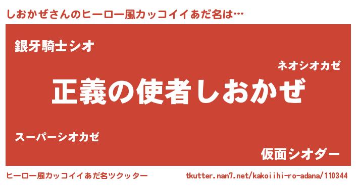 | 欧米人風あだ名 | 『ダニエルしおかぜ』『ウサインしおかぜ』 |