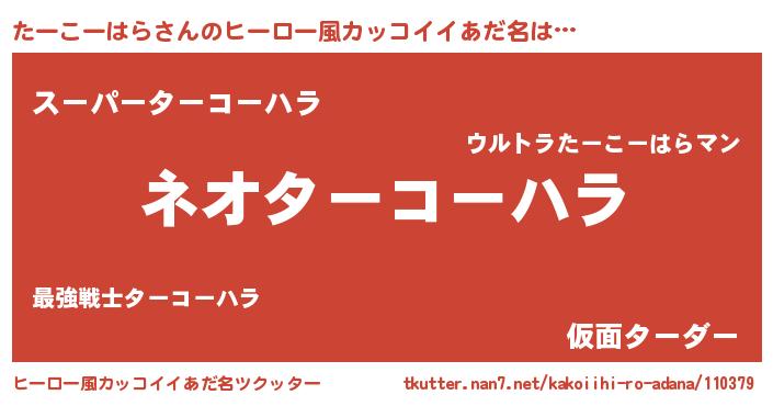 | 伝説のあだ名 | 『古より伝わる勇者たーこーはら』 |