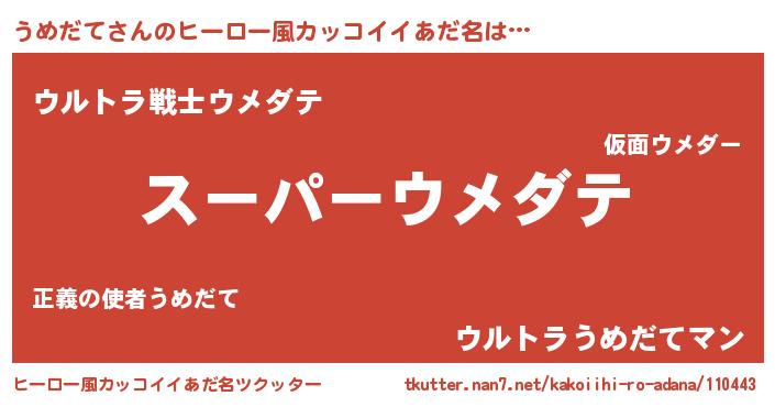 | 男性向けラノベタイトル風あだ名 | 『うめだての憂鬱』『魔弾の王とうめだて』 |