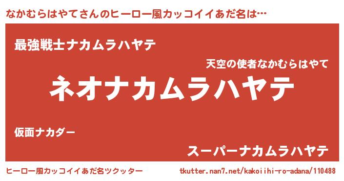 | 伝説のあだ名 | 『古より伝わる勇者なかむらはやて』 |
