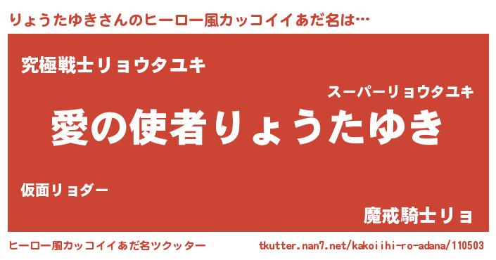 | 女子向けラノベタイトル風あだ名 | 『りょうたゆき恋絵巻』 |