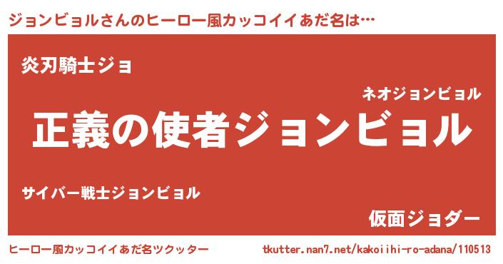 | ヘコむあだ名 | 『ジョを』『ジョンビョル(遠い目)』 |