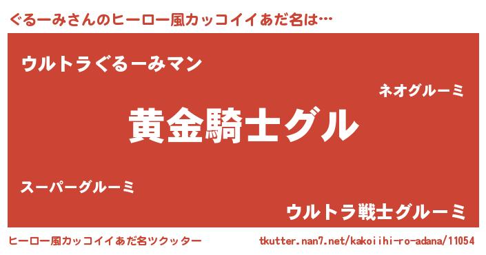 | 男性向けラノベタイトル風あだ名 | 『ダンジョンにぐるーみを求めるのは間違っているだろうか』 |