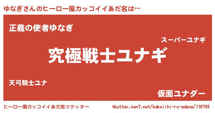 | 男性向けラノベタイトル風あだ名 | 『Re:ゆなぎから始める異世界生活』 |