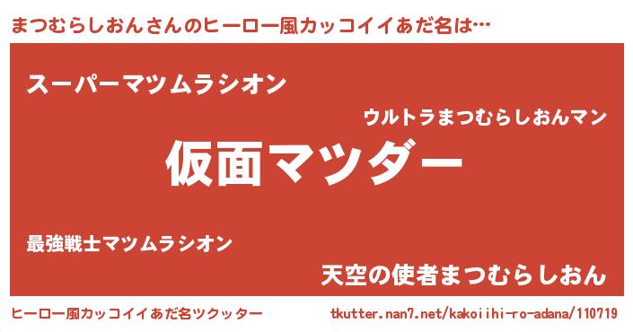 | 男性向けラノベタイトル風あだ名 | 『魔弾の王とまつむらしおん』 |