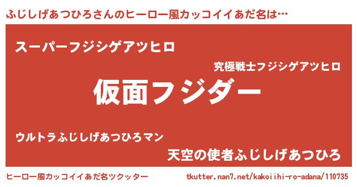 | 意味不明あだ名 | 『住所不定無職ふじしげあつひろ(41歳)』 |