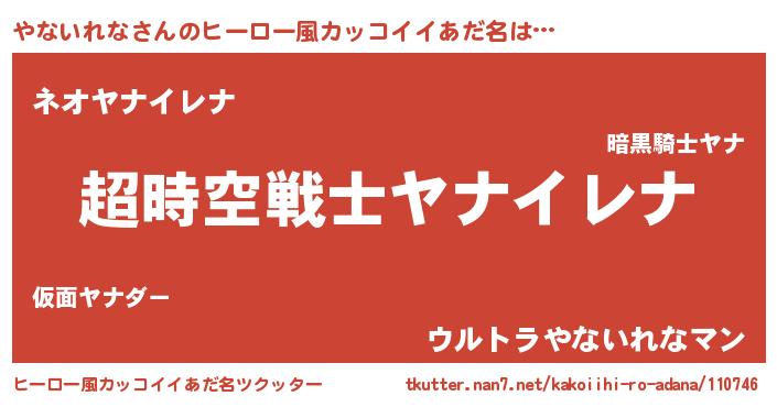 | 女子向けラノベタイトル風あだ名 | 『やないれななんてお断りですっ。』 |