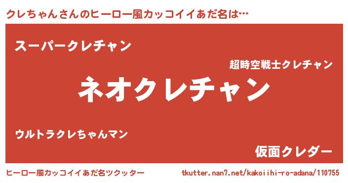 | 意味不明あだ名 | 『永久保存クレちゃん』『自称クレちゃん』 |