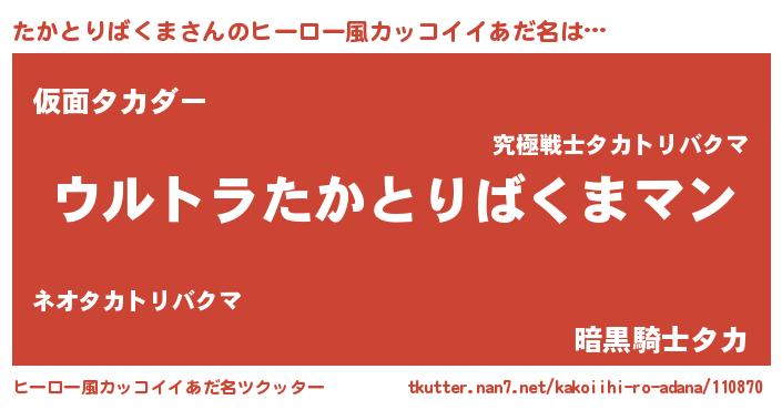 | 伝説のあだ名 | 『秘められし格闘家たかとりばくま』 |