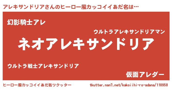 | 意味不明あだ名 | 『永久保存アレキサンドリア』 |