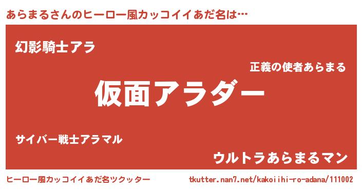 | 意味不明あだ名 | 『住所不定無職あらまる(74歳)』 |