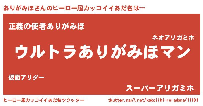 ありがみほさんのヒーロー風カッコイイあだ名をツクッター!