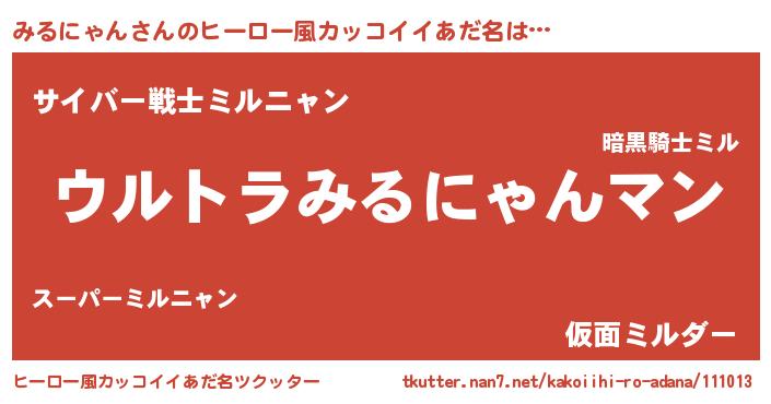 | 意味不明あだ名 | 『みるにゃんフォーエバー』 |