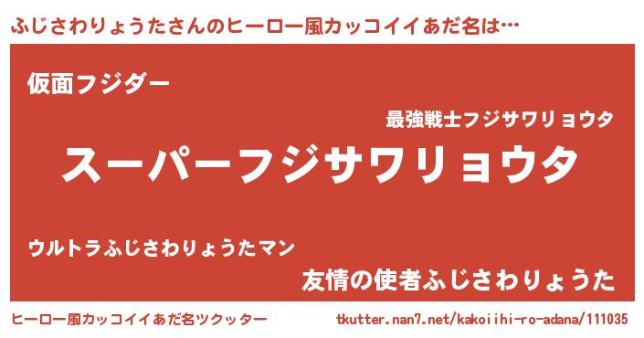 | 男性向けラノベタイトル風あだ名 | 『ふじさわりょうた~年齢イコール彼女いない歴の魔法使い~』 |