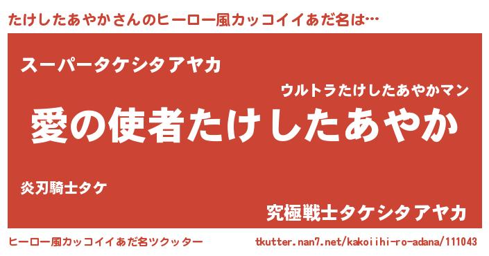 | ヘコむあだ名 | 『たけにー』『牛乳』『たけぷりん』 |