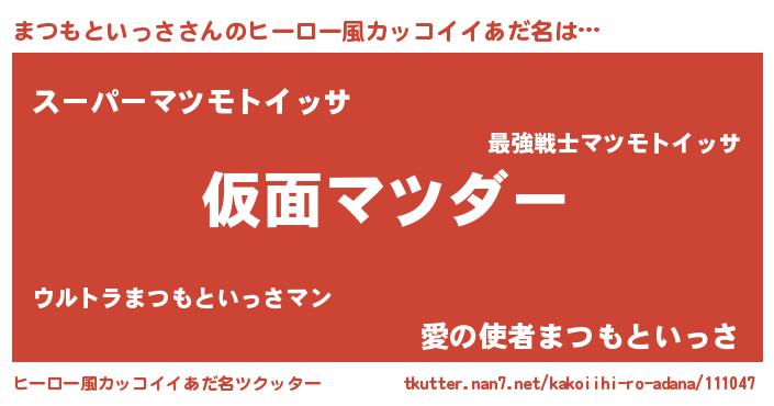 | 胡散臭い通販商品みたいなあだ名 | 『あなたにだけ特別に提供する100年もののヴィンテージワイン…その名も「まつもといっさ」』 |