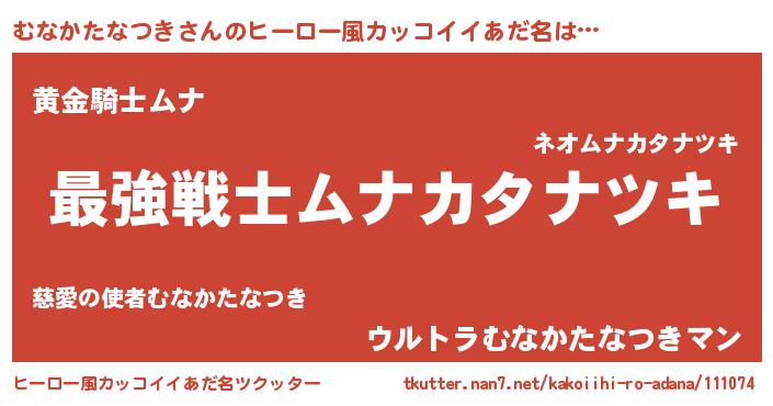 | 男性向けラノベタイトル風あだ名 | 『Re:むなかたなつきから始める異世界生活』 |
