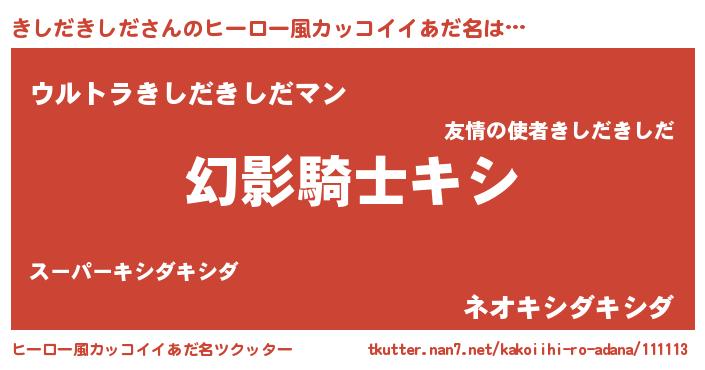 | 男性向けラノベタイトル風あだ名 | 『きしだきしだの嫁は女の子じゃないと思った?』 |