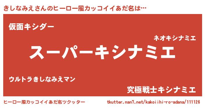 | 男性向けラノベタイトル風あだ名 | 『きしなみえの憂鬱』『緋弾のキシナミエ』 |