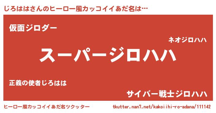 | 男性向けラノベタイトル風あだ名 | 『じろははの憂鬱』『魔弾の王とじろはは』 |