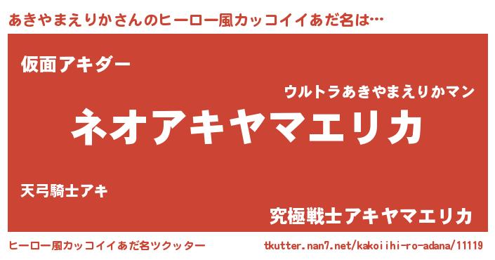 | 恥ずかしいあだ名 | 『あきちん』『アキヤマエリカデラックス』 |