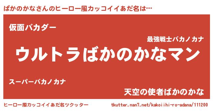 ばかのかなさんのヒーロー風カッコイイあだ名をツクッター!