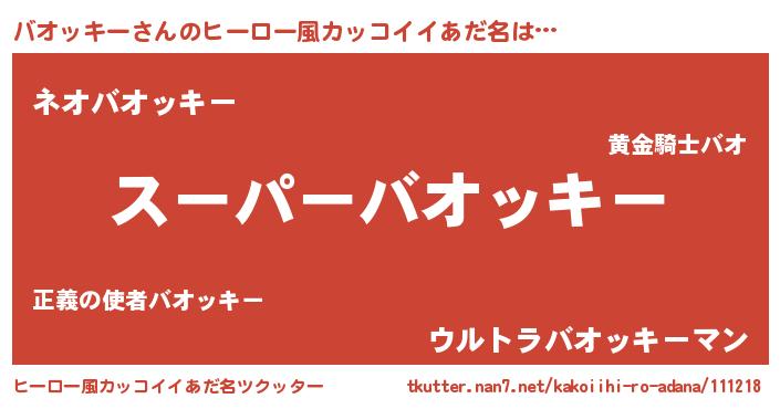 | ヘコむあだ名 | 『バオっふぃ~』『バオッキー(笑)』 |