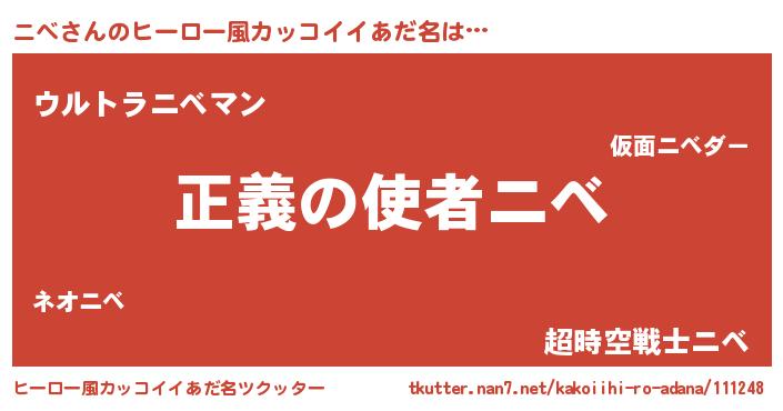 | ポケモン風あだ名 | 『ニベゴンZ』『ニックウザ』 |