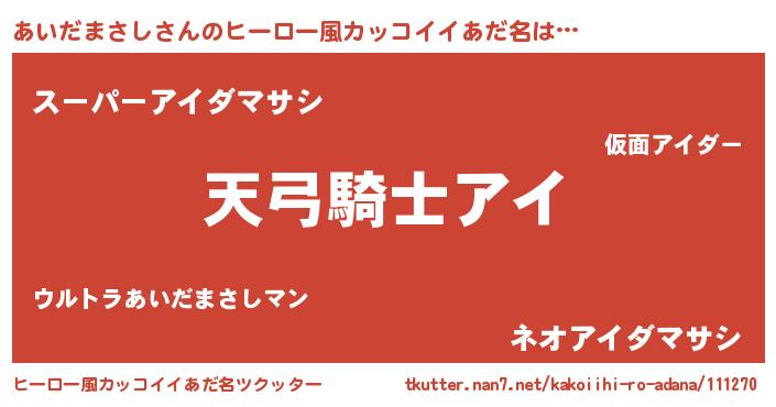 | 男性向けラノベタイトル風あだ名 | 『あいだまさしの嫁は女の子じゃないと思った?』 |