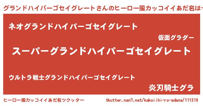| 男性向けラノベタイトル風あだ名 | 『グランドハイパーゴセイグレートアートオンライン』 |