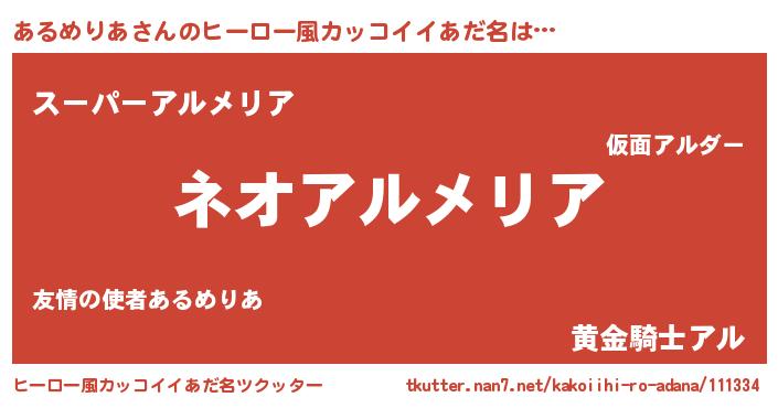 | ヘコむあだ名 | 『あるめりあ(笑)』『あるふぇ~』 |