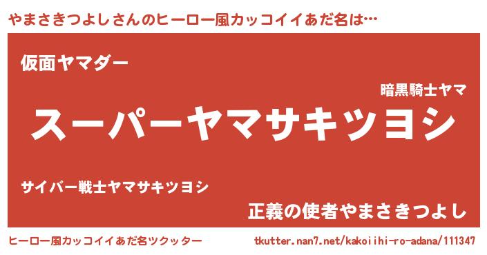 | 男性向けラノベタイトル風あだ名 | 『やまさきつよし~年齢イコール彼女いない歴の魔法使い~』 |