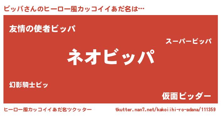 | 男性向けラノベタイトル風あだ名 | 『ビッパ~年齢イコール彼女いない歴の魔法使い~』 |
